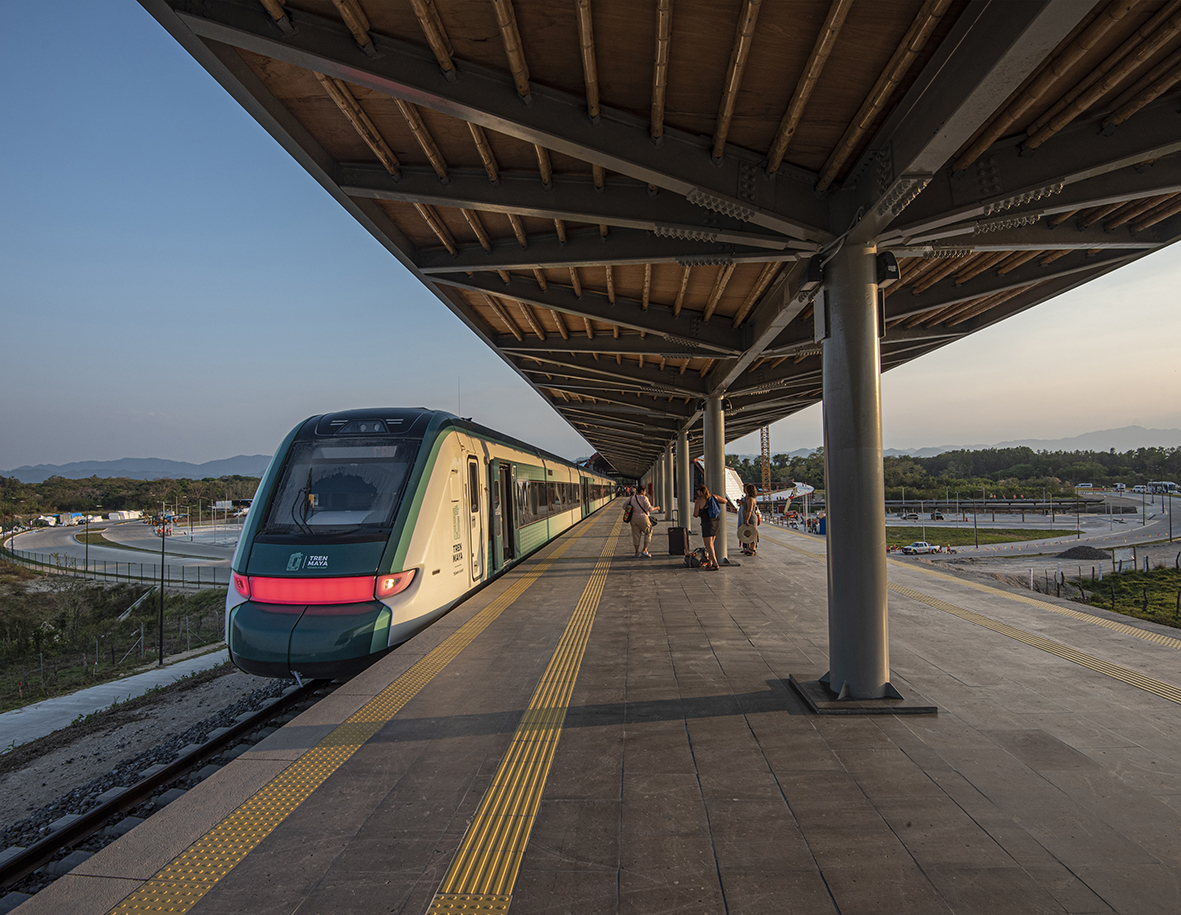 En Palenque, Chiapas, la ruta del Tren Maya encuentra uno de sus puntos de arranque. En el terreno del antiguo aeropuerto se desarrolla un urbanismo ecológico que articula los poblados de Palenque y Pakal Ná, con la estación terminal del tren como primera estructura de un nuevo centro cívico. Adicional a la potencia de ser un proyecto detonador de la economía local, el Tren Maya en Palenque re ilumina la cultura maya, su entorno selvático y su impresionante valor histórico-arqueológico. La arquitectura de la estación busca alinearse a estos aspectos y fue inspirada en su forma y materiales en elementos del arte antiguo y arquitectura vernácula.