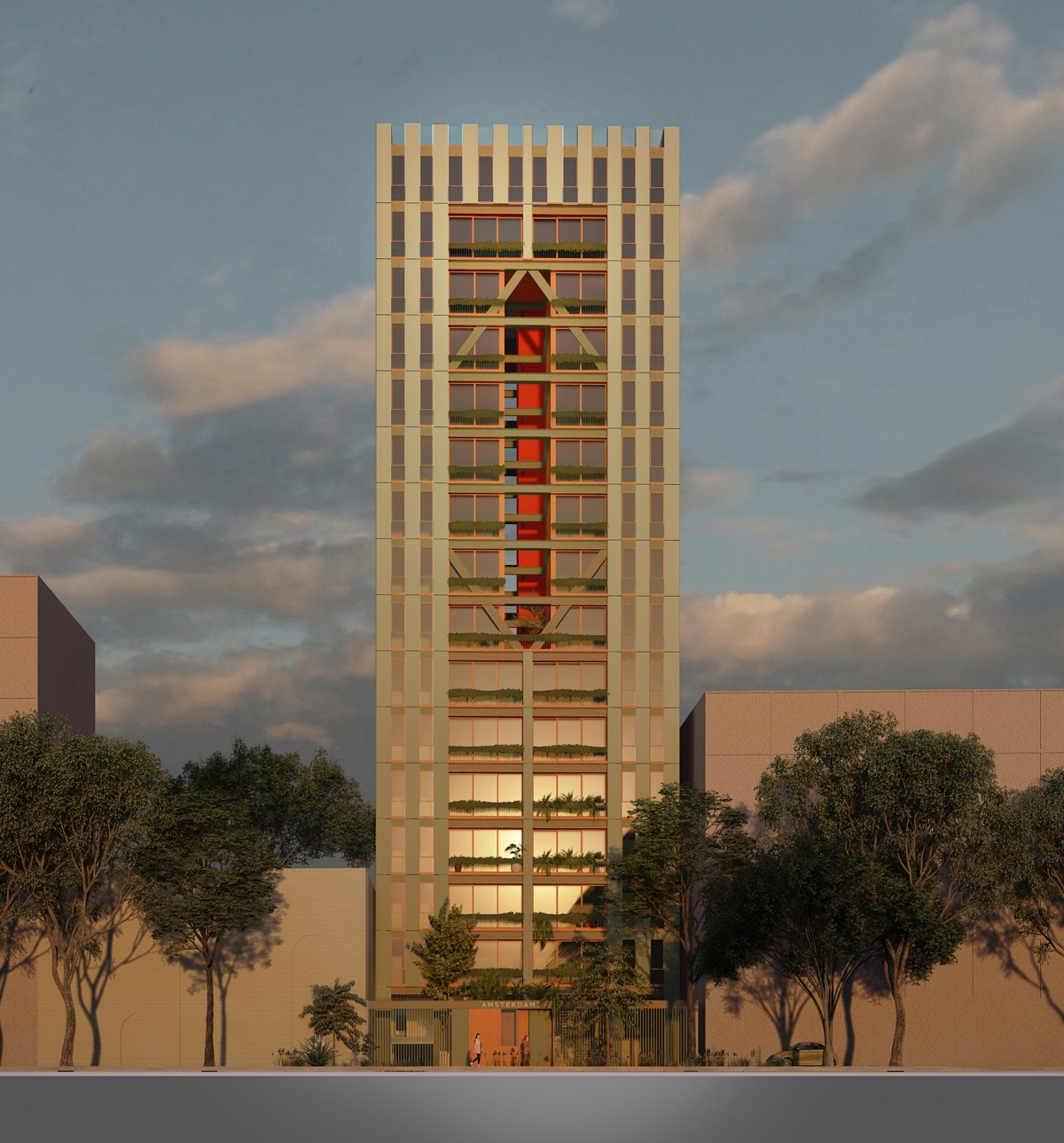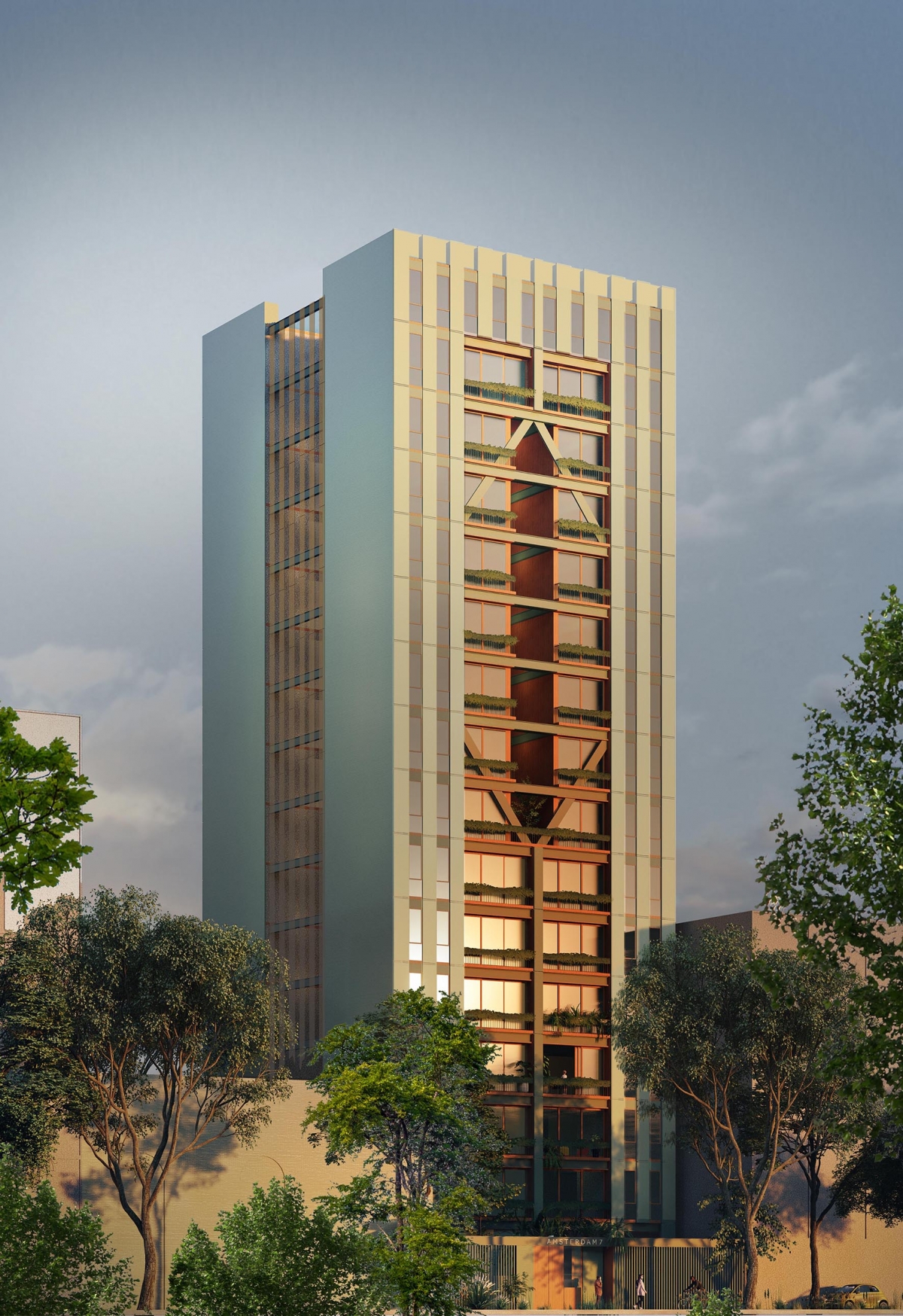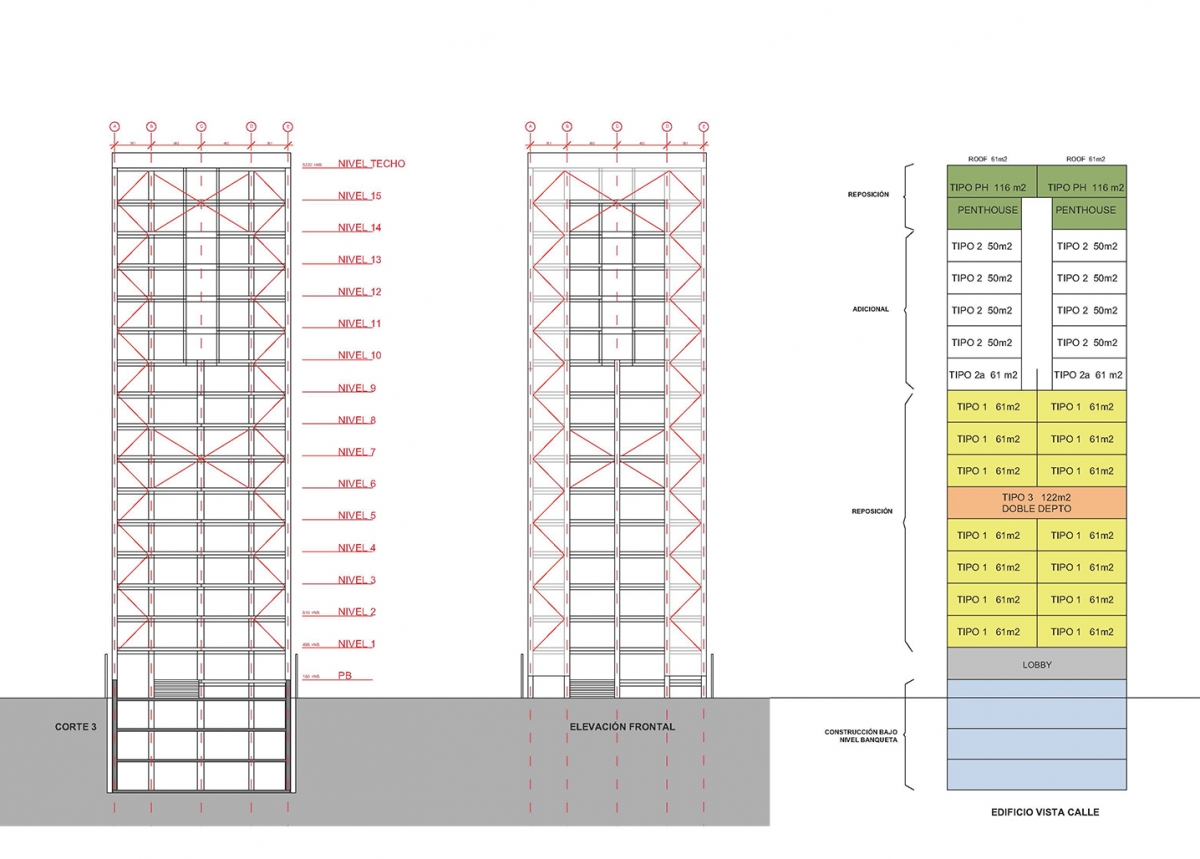 Anteproyecto arquitectónico para una torre de 58 departamentos de varias tipologías en La Condesa, Colonia Hipódromo. CDMX. El proyecto reemplaza a un edificio dañando por el sismo de 2017. Con el aumento permitido de volumen construido por el Ley de Reconstrucción, los damnificados pueden recuperar su patrimonio y la ciudad gana un nuevo ícono construido en una de las áreas más significativas de CDMX.ClientLos vecinos damnificados