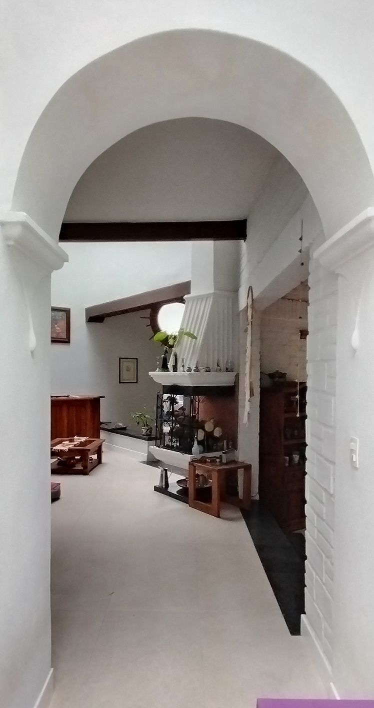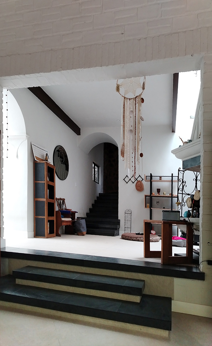 La casa existente, una extraña joya en estilo colonial falso construida en 1982 ya pasó su fecha de caducidad: severos problemas de humedad, falta de luz y calor, acabados dañados que en su momento tal vez hablaban de algo, pero desde hace mucho tiempo ya no tienen una conversación entendible. También difícil es trazar los motivos iniciales de ordenación de espacios y volumen. Sin embargo, la demolición no era opción y a su favor se habla de la abundancia de sus espacios, las alturas y un jardín silvestre que se mezcla con el bosque del entorno directo. ¡Entonces a remodelar!