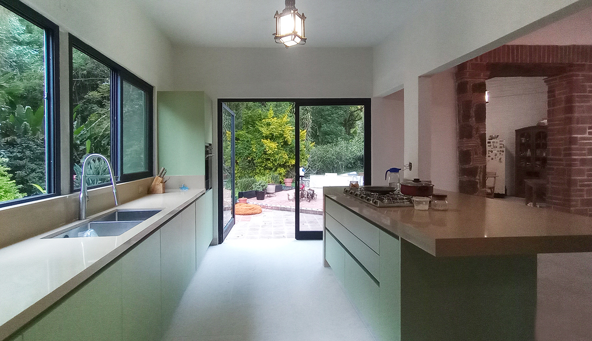 Se renovaron las instalaciones de desagüe y drenaje, y cambiamos puertas, muros, pisos, baños y la cocina. También introdujimos varios domos de cristal. El resultado es una casa con mucho carácter, con espacios limpios, secos y luminosos, y con equipamientos modernizados.