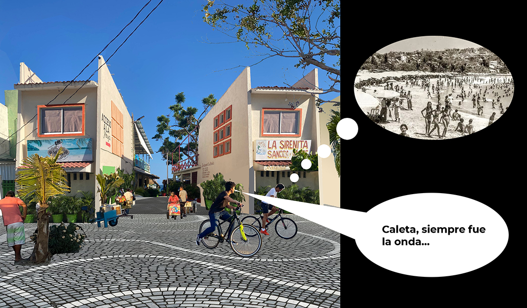 Espacio Caleta es un gran espacio público continuo entre la playa de Caleta hasta la Plaza de Toros que incluye la realización de un parque urbano, la reactivación de edificios en desuso, la formalización de puestos comerciales del mercado Santa Lucía, el ordenamiento de la plaza multimodal y el estacionamiento bajo la misma, el aumento en cantidad y calidad de baños públicos, y la mejora de zonas peatonales, plaza, pavimentos, iluminación, etc.