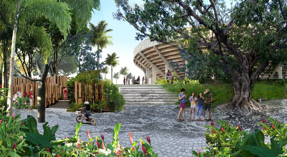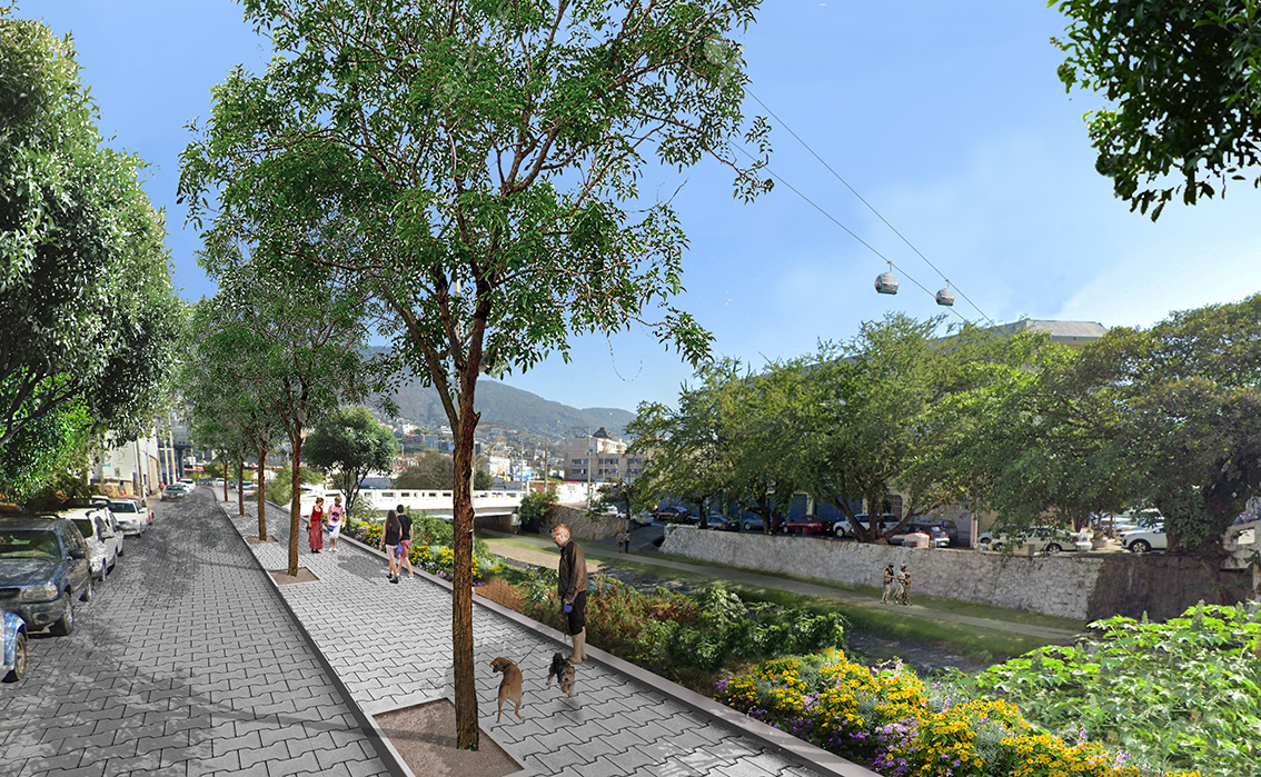 Aparte de Espacio Caleta presentamos ideas de recuperación de espacios públicos a lo largo del Río del Camarón, convirtiéndolo en una zona verde de calidad con zonas peatonales y vegetación endémica. Será parte del proyecto hidrológico para Acapulco de convertir estos espacios descuidados en espacios públicos para los habitantes de la ciudad.