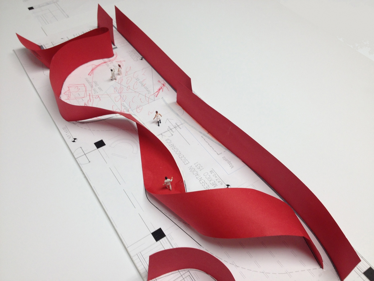 Los pliegues del manto de La VIrgen de Guadalupe son la guía para una nueva distribución de los espacios de un museo interactivo sobre la vida de Jesús. Muros curveados acompañan a la gente a través del edifico, dándoles protección y una experiencia de carácter austero.