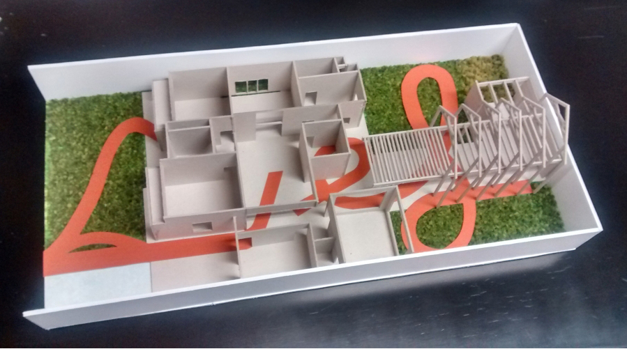 Casa Lego y Cancha: Se construye esta casita icónica de madera encima del techo de la construcción existente. Desde el jardín, a través de una escalera exterior, llegas a un puente que conecta la escuela con la casa lego. Dentro de esta casita se enseñan talleres de lego educativo como parte del programa de la escuela. Al otro extremo del puente llegas a una cancha destinada para hacer deportes infantiles, bajo de una malla de sombra.
